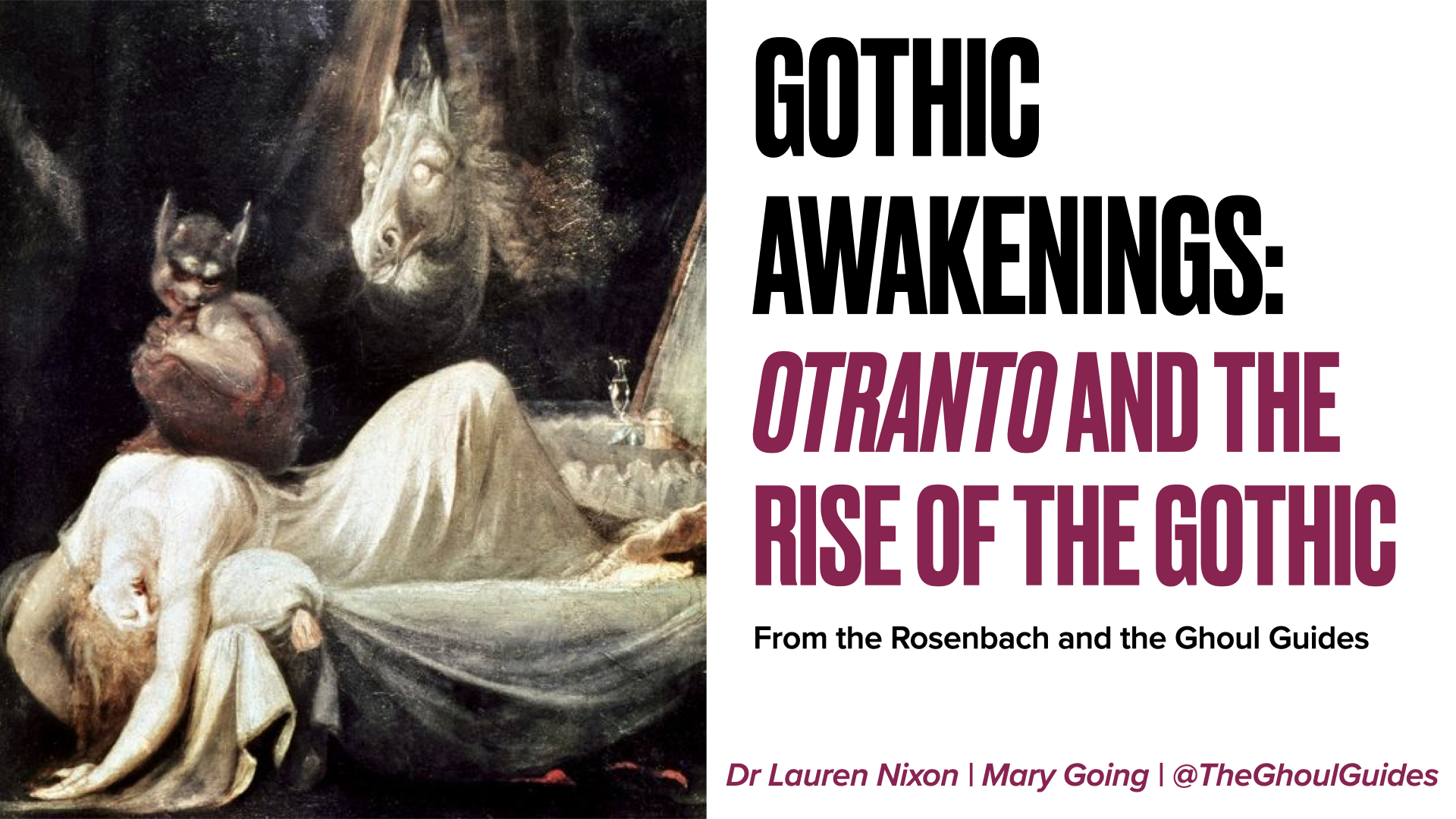 In 2022, I was honoured to be asked by the Rosenbach Museum (Philadelphia, USA) to design and co-lead an online course with my collaborator and fellow Ghoul Guide, Dr Lauren Nixon. We created a 4-week online course on the early Gothic titled Gothic Awakenings. This course explored the eighteenth century origins of the Gothic and its initial developments in the early nineteenth century, focusing on Gothic novels by Horace Walpole, Ann Radcliffe, Matthew Gregory Lewis and Charlotte Dacre.